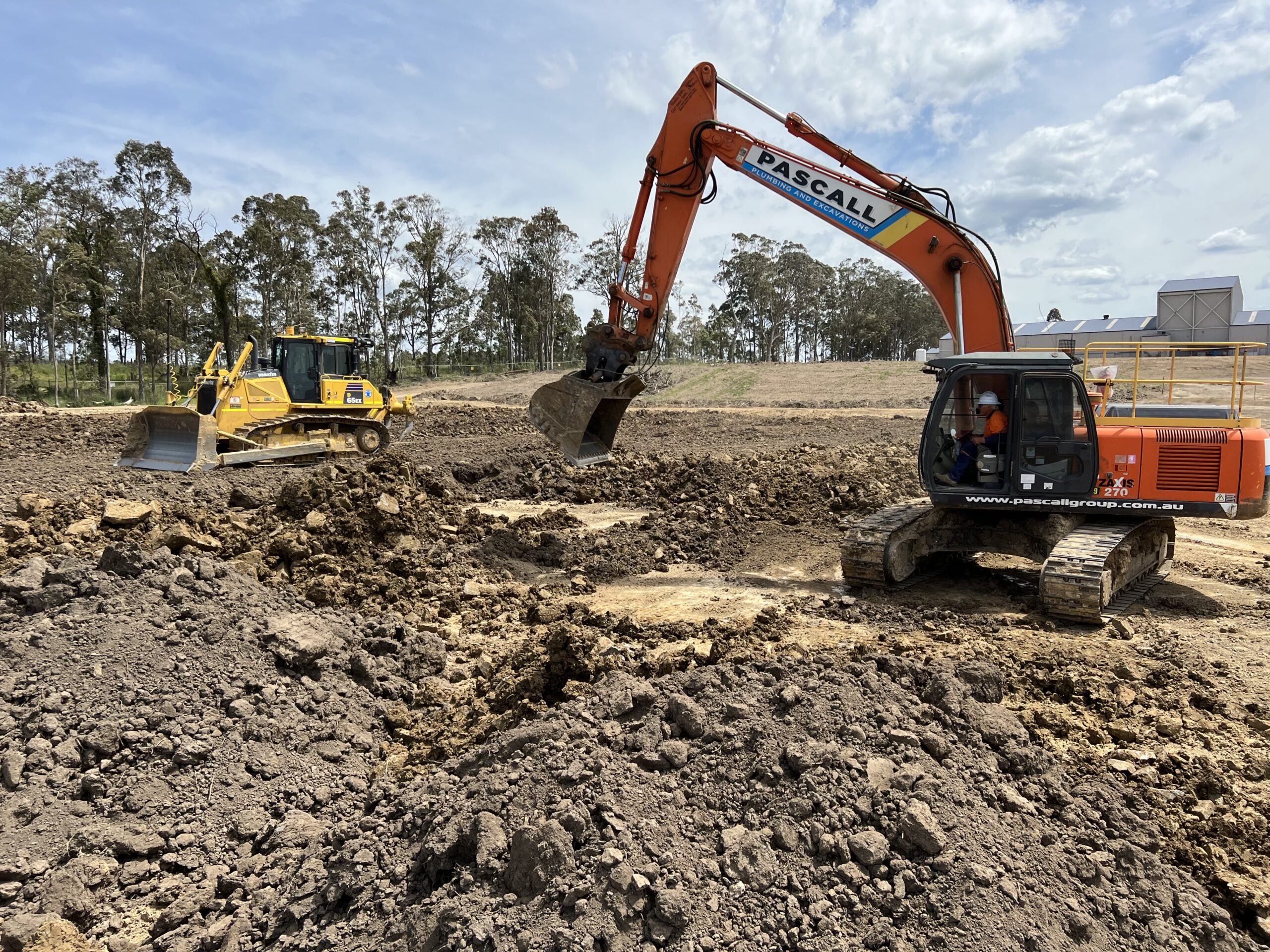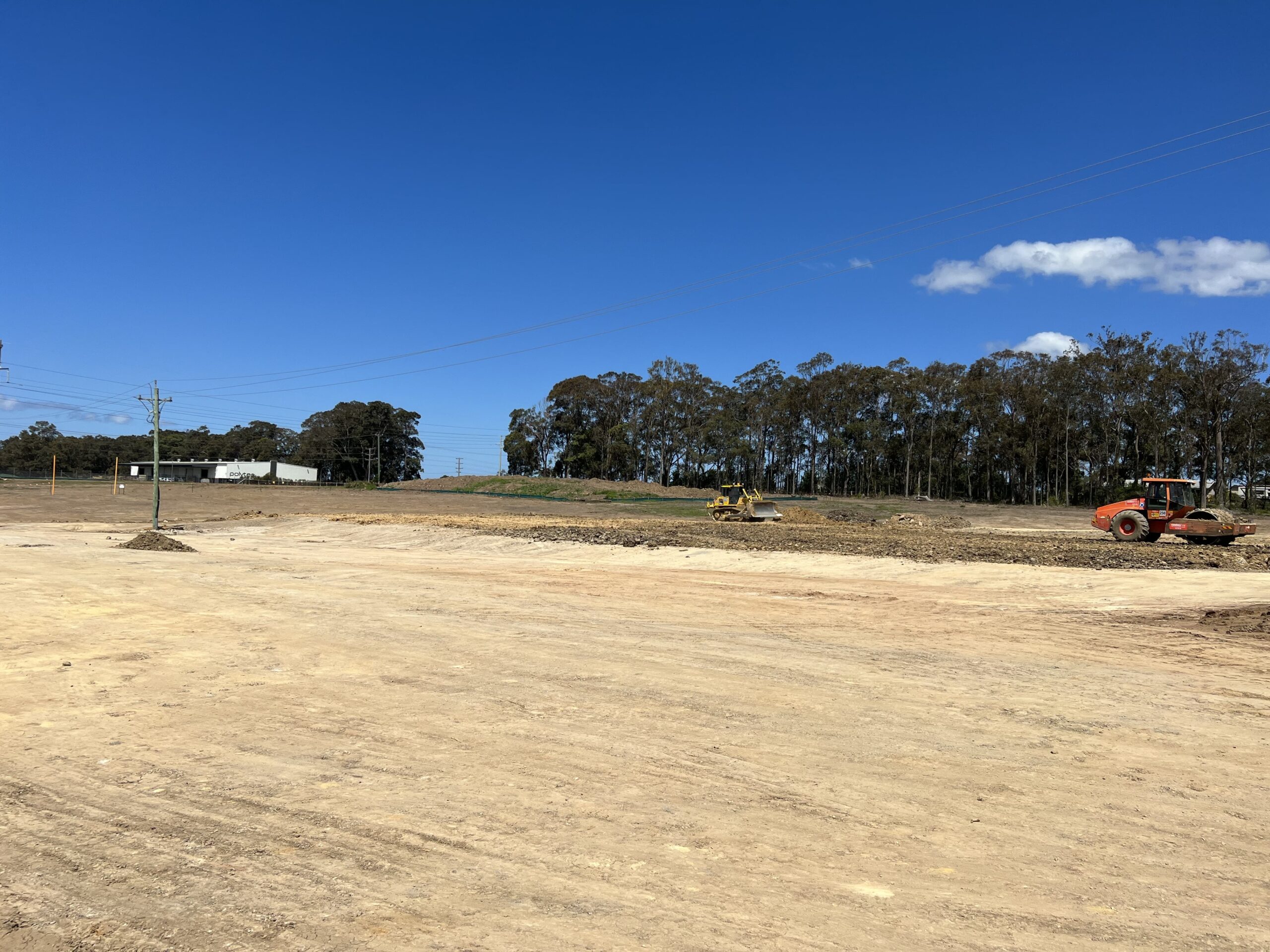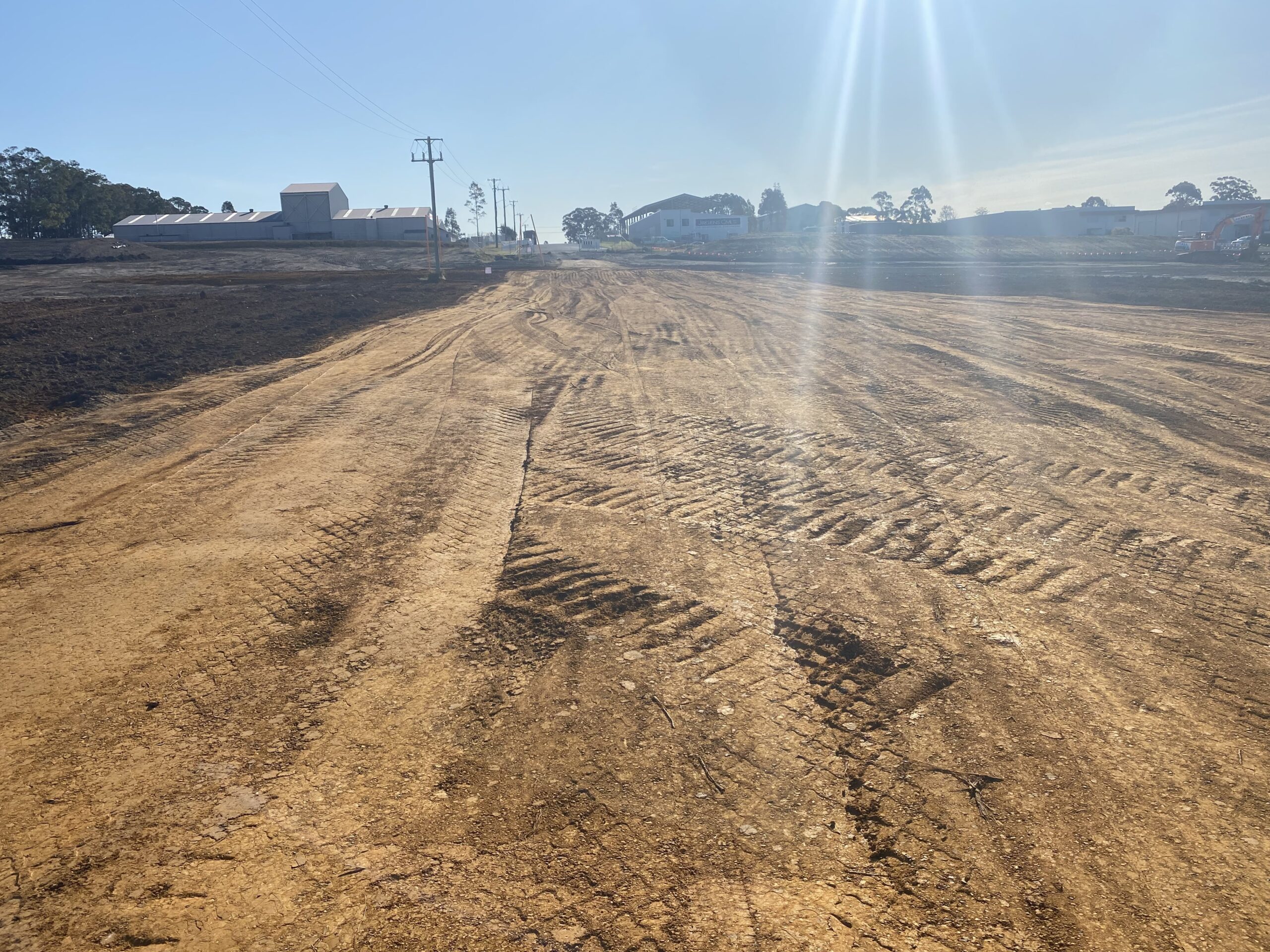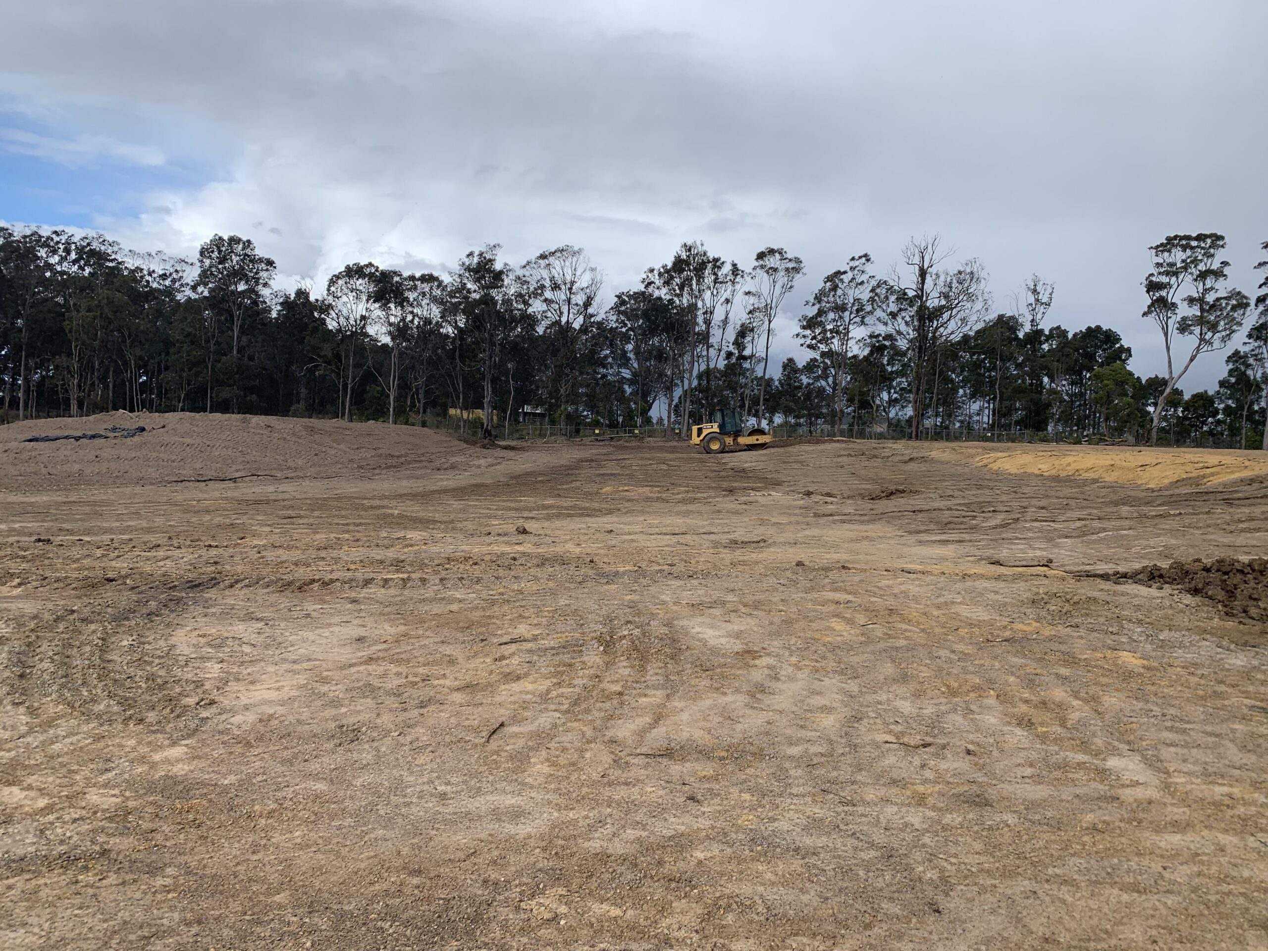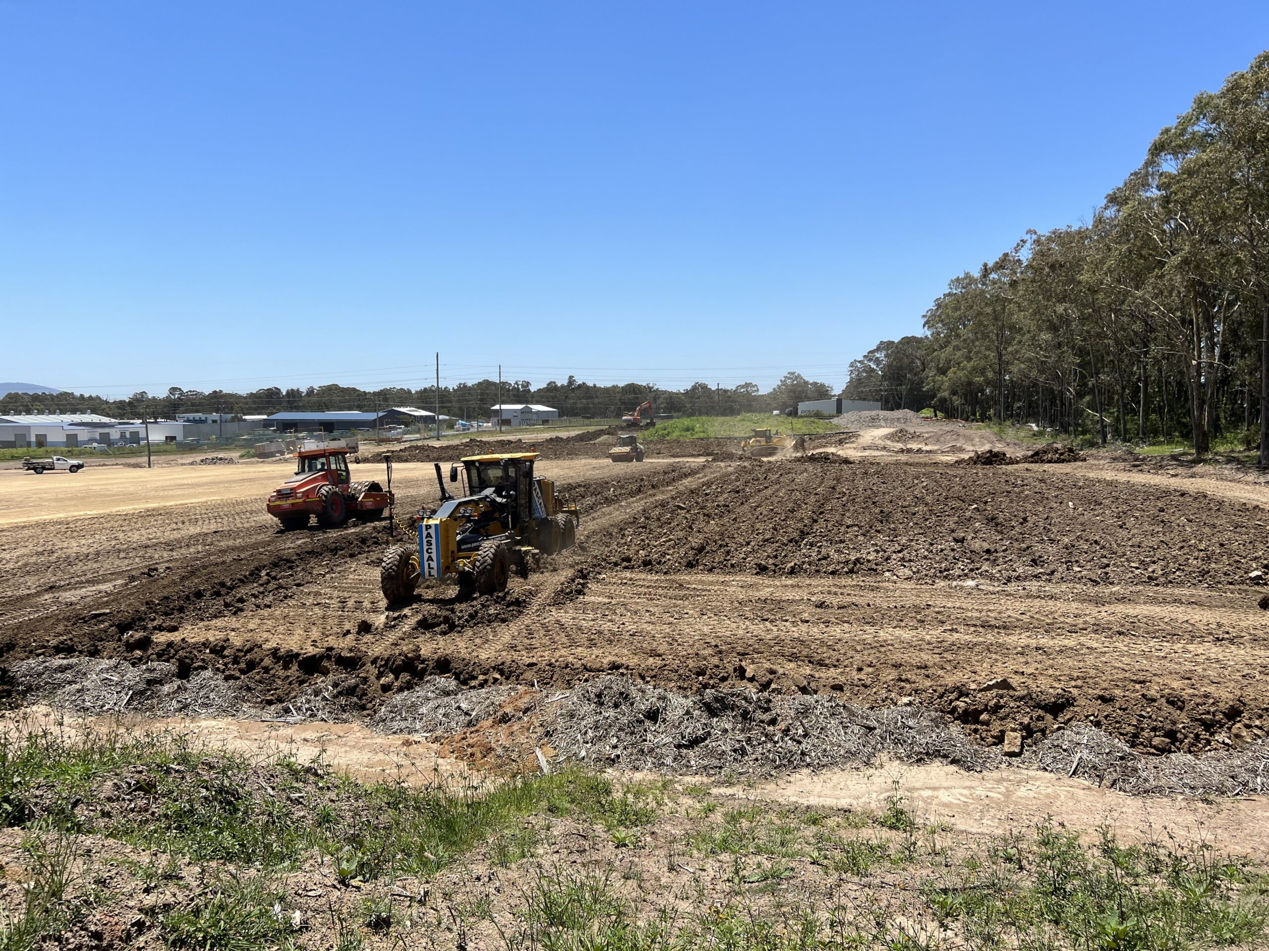 • Extensive bulk earthworks. The site required ~250,000t of fill to be imported and compacted under Level 1 geotechnical supervision.